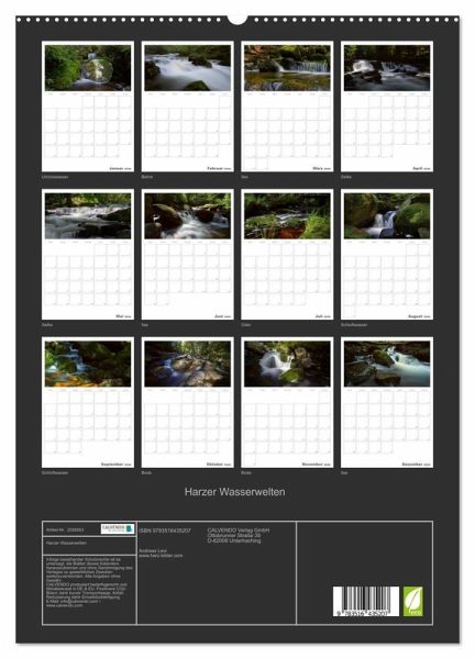 PREMIUM-LINIE - Brillanter Fotokalender mit 12 wunderschönen Motiven, Kunstdruck in Hochglanz in Museumsqualität.QUALITÄT - edle Materialien, stabile Rückwand mit 2 innovativen Einstecktaschen für eine optimale Präsentation an der Wand.NACHHALTIG - deutliche Abfallreduzierung durch bedarfsgerechte Einzelstückfertigung, umweltfreundliches FSC-zertifiziertes Papier, Produktion in Deutschland, klimabewusste Logistik.PERFEKTES GESCHENK - Kalender für Freunde und Familie, für Kinder und Erwachsene, jung und alt, zu Weihnachten, Geburtstag oder zwischendurch.Bäche, Flüssse und Wasserfälle des Harzes begleiten Sie durch das Jahr. von Autor(in): Andreas Levi