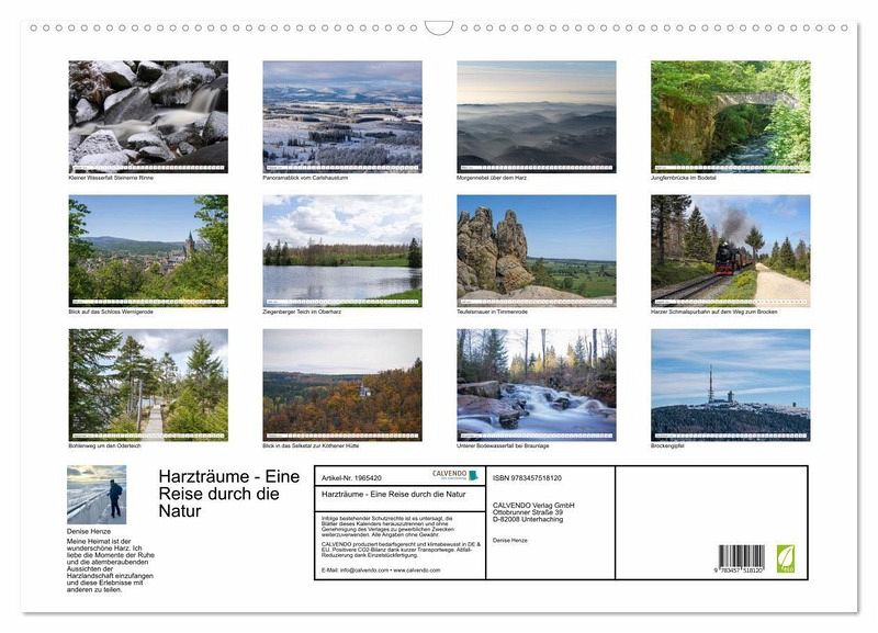 QUALITÄT - Hochwertiger Fotokalender mit 12 wunderschönen Motiven auf lichtbeständigem Bilderdruckpapier, robuste Spiralbindung mit Aufhängebügel.NACHHALTIG - deutliche Abfallreduzierung durch bedarfsgerechte Einzelstückfertigung, umweltfreundliches FSC-zertifiziertes Papier, Produktion in Deutschland, klimabewusste Logistik.PERFEKTES GESCHENK - Kalender für Freunde und Familie, für Kinder und Erwachsene, jung und alt, zu Weihnachten, Geburtstag oder zwischendurch.VIELFALT - Bildkalender in verschiedenen Formaten, z.B. DIN A5, DIN A4, DIN A3 sowie DIN A2. Ob Naturmotiv, Gemälde oder Fotos, ideal für ein persönliches Wohlfühlambiente.Entdecke die faszinierende Welt des Harzes! von Autor(in): Denise Henze