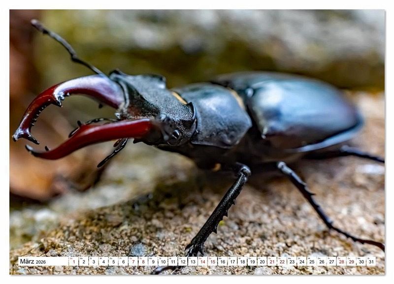 März: Aus modrigem Holz krabbelnd und nahe der Ilse begegnet uns ein prachtvoller Hirschkäfer