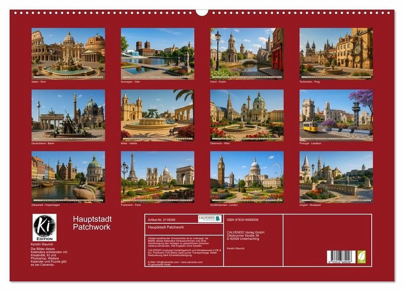QUALITÄT - Hochwertiger Fotokalender mit 12 wunderschönen Motiven auf lichtbeständigem Bilderdruckpapier, robuste Spiralbindung mit Aufhängebügel.NACHHALTIG - deutliche Abfallreduzierung durch bedarfsgerechte Einzelstückfertigung, umweltfreundliches FSC-zertifiziertes Papier, Produktion in Deutschland, klimabewusste Logistik.PERFEKTES GESCHENK - Kalender für Freunde und Familie, für Kinder und Erwachsene, jung und alt, zu Weihnachten, Geburtstag oder zwischendurch.VIELFALT - Bildkalender in verschiedenen Formaten, z.B. DIN A5, DIN A4, DIN A3 sowie DIN A2. Ob Naturmotiv, Gemälde oder Fotos, ideal für ein persönliches Wohlfühlambiente.Für alle, die keine Zeit zum Reisen haben - die Sehenswürdigkeiten europäischer Hauptstädte in jeweils einem Bild von Autor(in): Kerstin Waurick