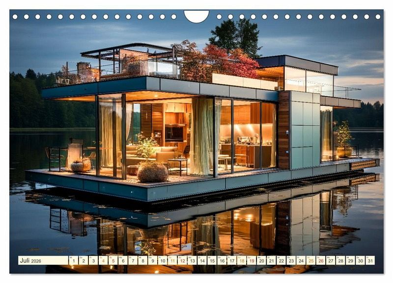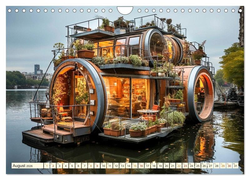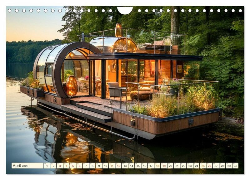 Treten Sie ein in die Zukunft mit unserem futuristischen Hausbootkalender! Tauchen Sie ein in die Faszination klar strukturierter Formen und gläserner Designs, die Räume schaffen und lichtdurchflutet werden. Erleben Sie ebenso die Verschmelzung von Innovation und Natur, wenn tonnenförmige Strukturen harmonisch mit üppigem Grün koexistieren, sowohl an Bord als auch am Ufer. Der Fotokünstler Peter Roder hat darüber fantastische KI-Bilder gestaltet. Lassen Sie sich das ganze Jahr über von den beeindruckenden Bildern inspirieren und träumen Sie von einer visionären Zukunft!