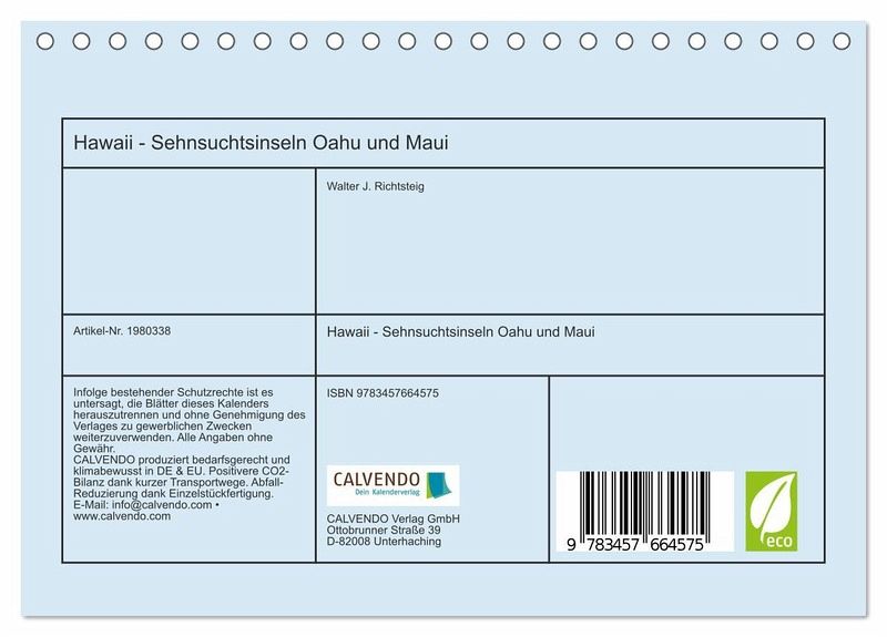 Ein Kalender aus der Signatur Analog Edition. Hawaii, gerühmt und besungen, ist leider weit weg. Diese Inseln waren deshalb immer schon Sehnsuchtsorte besonderer Faszination. Dieser Kalender zeigt dreizehn eindrucksvolle Motive - bewusst abseits typischer Klischees und aus vordigitaler Zeit. Sie entstanden in Honolulu und Waikiki (Oahu) sowie in und um Lahaina (Maui).