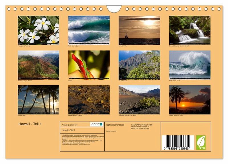QUALITÄT - Hochwertiger Fotokalender mit 12 wunderschönen Motiven auf lichtbeständigem Bilderdruckpapier, robuste Spiralbindung mit Aufhängebügel.NACHHALTIG - deutliche Abfallreduzierung durch bedarfsgerechte Einzelstückfertigung, umweltfreundliches FSC-zertifiziertes Papier, Produktion in Deutschland, klimabewusste Logistik.PERFEKTES GESCHENK - Kalender für Freunde und Familie, für Kinder und Erwachsene, jung und alt, zu Weihnachten, Geburtstag oder zwischendurch.VIELFALT - Bildkalender in verschiedenen Formaten, z.B. DIN A5, DIN A4, DIN A3 sowie DIN A2. Ob Naturmotiv, Gemälde oder Fotos, ideal für ein persönliches Wohlfühlambiente.Das Beste aus den vier Hauptinseln O'ahu, Kaua'i, Maui und Hawai'i von Autor(in): Rudolf Friederich