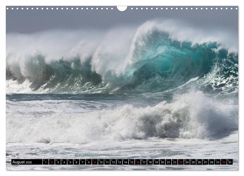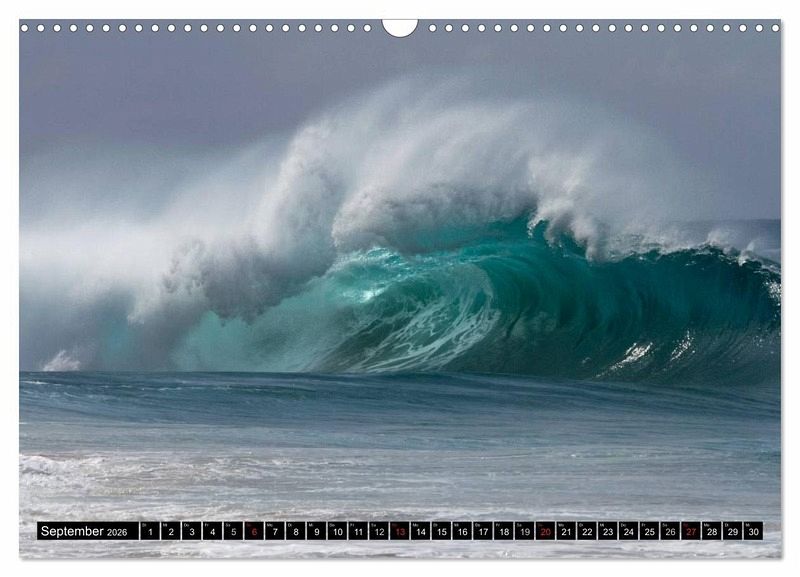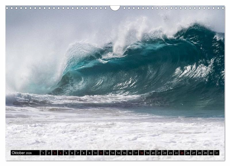 Erleben Sie in diesem Kalender die schönsten und grössten Wellen von Hawai'i, die gleichzeitig so nah am Strand sind. Die berühmten Wellen an der North Shore sind zwar grösser, jedoch nicht so spektakulär. Hier an diesem Strand auf Kaua'i krachen die Wellen an die Felsen und wieder zurück auf entgegenkommende Wellen, was zu mächtigen Wellentürmen führt, die in einem riesigem Donnergetöse wieder zusammenfallen. Ein unglaubliches Erlebnis, was dauerhaft in Erinnerung bleibt.