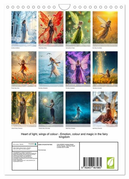 QUALITY - High-quality photo calendar with 12 beautiful images on light-resistant paper, robust spiral binding with hanger.SUSTAINABLE - Significant waste reduction due to print-on-demand production, environmentally friendly FSC-certified paper, produced in the UK, climate-conscious logistical processes.PERFECT GIFT - calendars for friends and family, for children, all ages and all occasions, from Christmas to birthdays and everything in between.LOTS OF CHOICE - Wall calendars in different sizes (DIN A4 and DIN A3), for any topic and personal taste, featuring photography, painting and illustrations.Fairy magic, colours and feelings. An AI-generated picture book for the soul, author: Michaela Spreider