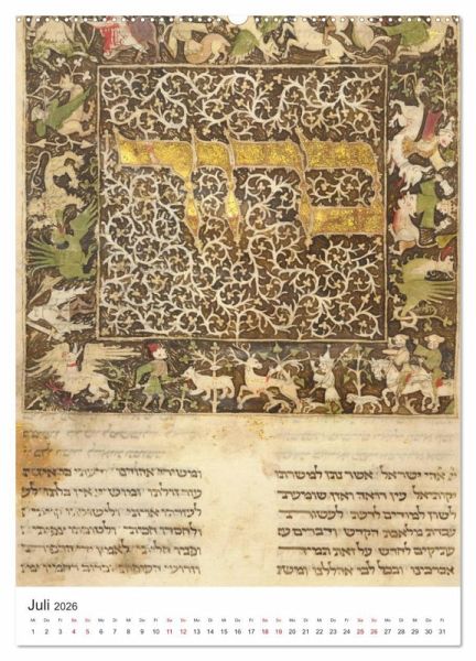 Umgeben Sie sich Monat für Monat mit Meisterwerken hebräisch-jüdischer Buchkunst. Diese Kunstwerke aus der jüdischen Torah, Propheten und Schriften, sowie Haggadot und Gebetsbüchern sind durch die Jahrhunderte in den Bibliotheken der Welt erhalten geblieben. Gönnen Sie sich diese Reise in die hebräische Glaubens- und Bücherwelt.