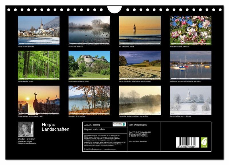 QUALITÄT - Hochwertiger Fotokalender mit 12 wunderschönen Motiven auf lichtbeständigem Bilderdruckpapier, robuste Spiralbindung mit Aufhängebügel.NACHHALTIG - deutliche Abfallreduzierung durch bedarfsgerechte Einzelstückfertigung, umweltfreundliches FSC-zertifiziertes Papier, Produktion in Deutschland, klimabewusste Logistik.PERFEKTES GESCHENK - Kalender für Freunde und Familie, für Kinderund Erwachsene, jung und alt, zu Weihnachten, Geburtstag oder zwischendurch.VIELFALT - Bildkalender in verschiedenen Formaten, z.B. DIN A5, DIN A4, DIN A3 sowie DIN A2. Ob Naturmotiv, Gemälde oder Fotos, ideal für ein persönliches Wohlfühlambiente.Hegau-Landschaften im Wandel der Jahreszeiten von Autor(in): Christian Horstkötter