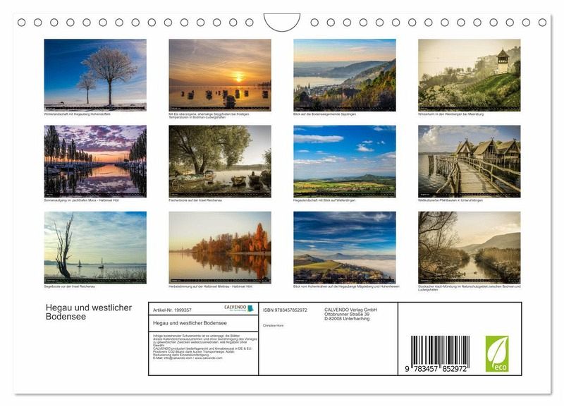 QUALITÄT - Hochwertiger Fotokalender mit12 wunderschönen Motiven auf lichtbeständigem Bilderdruckpapier, robuste Spiralbindung mit Aufhängebügel.NACHHALTIG - deutliche Abfallreduzierung durch bedarfsgerechte Einzelstückfertigung, umweltfreundliches FSC-zertifiziertes Papier, Produktion in Deutschland, klimabewusste Logistik.PERFEKTES GESCHENK - Kalender für Freunde und Familie, für Kinder und Erwachsene, jung und alt, zu Weihnachten, Geburtstag oder zwischendurch.VIELFALT - Bildkalender in verschiedenen Formaten, z.B. DIN A5, DIN A4, DIN A3 sowie DIN A2. Ob Naturmotiv, Gemälde oder Fotos, ideal für ein persönliches Wohlfühlambiente.Ausgesuchte Fotomotive aus dem Hegau und dem westlichen Bodensee im Wechsel der Jahreszeiten erleben von Autor(in): Christine Horn
