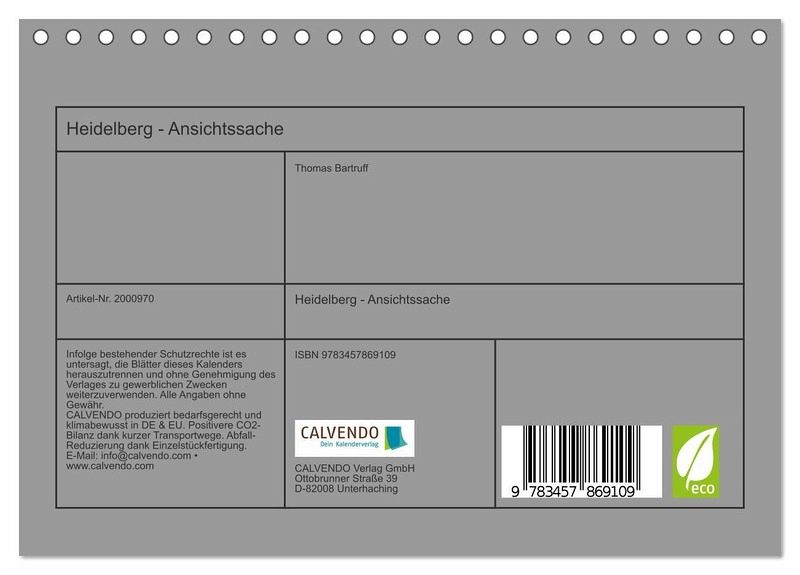 QUALITÄT - Hochwertiger Fotokalender mit 12 wunderschönen Motiven auf lichtbeständigem Bilderdruckpapier, robuste Spiralbindung.NACHHALTIG - deutliche Abfallreduzierung durch bedarfsgerechte Einzelstückfertigung, umweltfreundliches FSC-zertifiziertes Papier, Produktion in Deutschland, klimabewusste Logistik.PERFEKTES GESCHENK - Kalender für Freunde und Familie, für Kinder und Erwachsene, jung und alt, zu Weihnachten, Geburtstag oder zwischendurch.VIELFALT - Bildkalender in verschiedenen Formaten, z.B. DIN A5, DIN A4, DIN A3 sowie DIN A2. Ob Naturmotiv, Gemälde oder Fotos, ideal für ein persönliches Wohlfühlambiente.Heidelberg - die romantische Großstadt von Autor(in):Thomas Bartruff