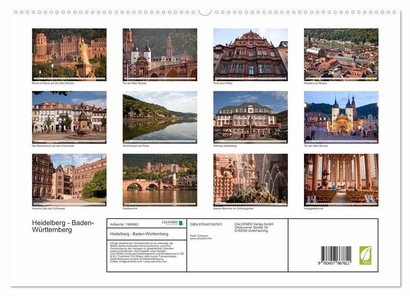 Dieser farbenfrohe Kalender vom Reisefotografen Peter Schickert zeigt eine der schönsten und beliebtesten Städte dieser Republik - Heidelberg in Baden-Württemberg. 13 Fotos die Lust machen auf einen Besuch der zahlreichen Sehenswürdigkeiten am Neckar!