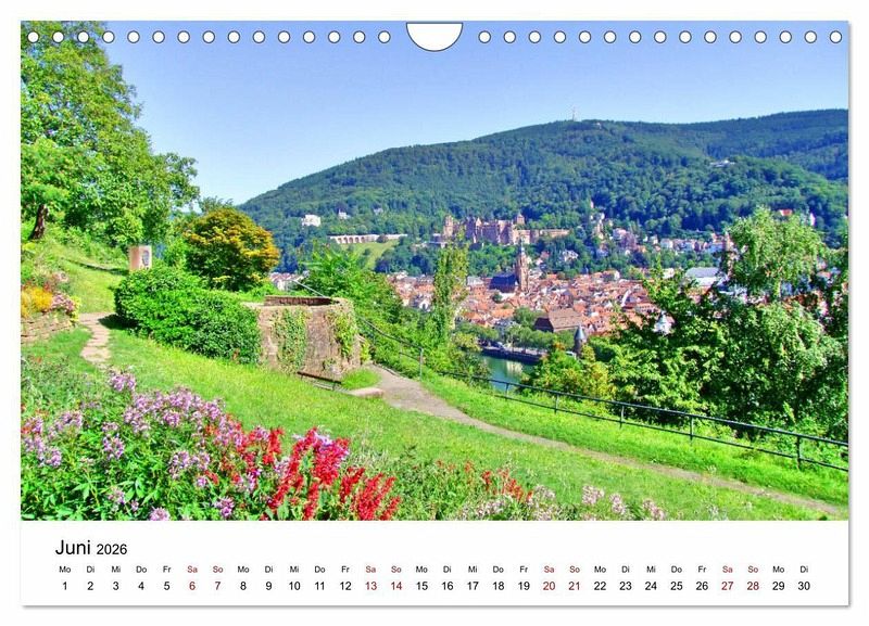 Mai: Philosophenweg mit 'Haidelberga'-Kupferstich von Merian