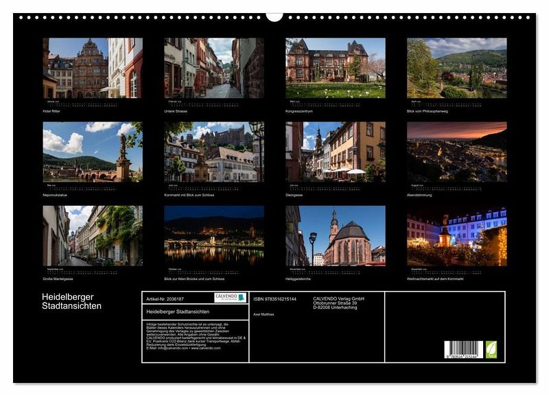 QUALITÄT - Hochwertiger Fotokalender mit 12 wunderschönen Motiven auf lichtbeständigem Bilderdruckpapier, robuste Spiralbindung mit Aufhängebügel.NACHHALTIG - deutliche Abfallreduzierung durch bedarfsgerechte Einzelstückfertigung, umweltfreundliches FSC-zertifiziertes Papier, Produktion in Deutschland, klimabewusste Logistik.PERFEKTES GESCHENK - Kalender für Freunde und Familie, für Kinder und Erwachsene, jung und alt, zu Weihnachten, Geburtstag oder zwischendurch.VIELFALT - Bildkalender in verschiedenen Formaten, z.B. DIN A5, DIN A4, DIN A3 sowie DIN A2. Ob Naturmotiv, Gemälde oder Fotos, ideal für ein persönliches Wohlfühlambiente.Bilderreise durch die romantische Stadt am Neckar von Autor(in): Axel Matthies