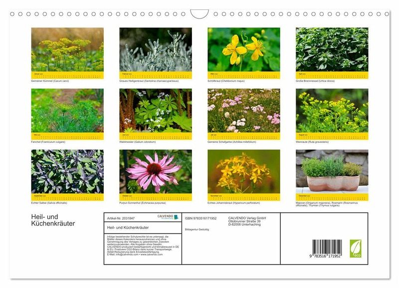 QUALITÄT - Hochwertiger Fotokalender mit 12 wunderschönen Motiven auf lichtbeständigem Bilderdruckpapier, robuste Spiralbindung mit Aufhängebügel.NACHHALTIG - deutliche Abfallreduzierung durch bedarfsgerechte Einzelstückfertigung, umweltfreundliches FSC-zertifiziertes Papier, Produktion in Deutschland, klimabewusste Logistik.PERFEKTES GESCHENK - Kalender für Freunde und Familie, für Kinder und Erwachsene, jung und alt, zu Weihnachten, Geburtstag oder zwischendurch.VIELFALT - Bildkalender in verschiedenen Formaten, z.B. DIN A5, DINA4, DIN A3 sowie DIN A2. Ob Naturmotiv, Gemälde oder Fotos, ideal für ein persönliches Wohlfühlambiente.Heilkräuter und Küchenkräuter im Garten von Autor(in): Erich Geduldig