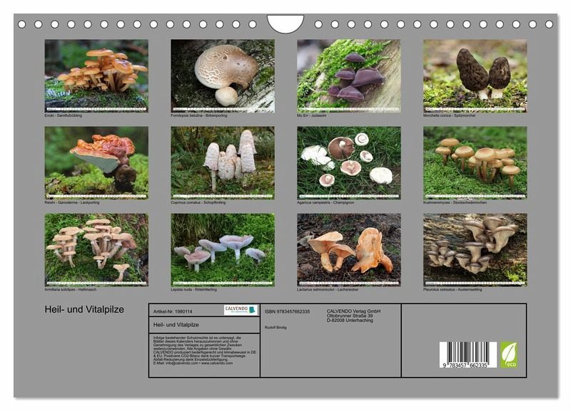 QUALITÄT - Hochwertiger Fotokalender mit 12 wunderschönen Motiven auf lichtbeständigem Bilderdruckpapier, robuste Spiralbindung mit Aufhängebügel.NACHHALTIG - deutliche Abfallreduzierung durch bedarfsgerechte Einzelstückfertigung, umweltfreundliches FSC-zertifiziertes Papier, Produktion in Deutschland, klimabewusste Logistik.PERFEKTES GESCHENK - Kalender für Freunde und Familie, für Kinder und Erwachsene, jung und alt, zu Weihnachten, Geburtstag oder zwischendurch.VIELFALT - Bildkalender in verschiedenen Formaten, z.B. DIN A5, DIN A4, DIN A3 sowie DIN A2. Ob Naturmotiv, Gemälde oder Fotos, ideal für ein persönliches Wohlfühlambiente.Heimische Heil- und Vitalpilze von Autor(in): Rudolf Bindig