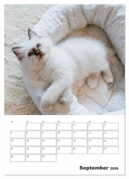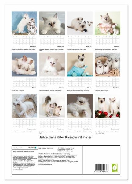 Unser hochwertiger Kalender enthält zwölf bezaubernde Fotos von niedlichen und verspielten Heilige Birma Kitten, die jedes Katzenherz höher schlagen lassen.