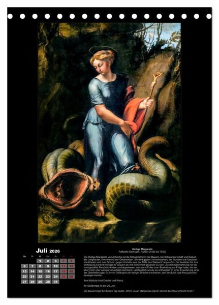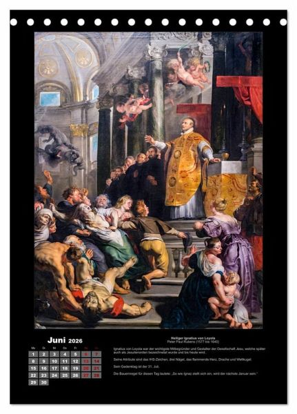Zwölf Heilige, dargestellt auf großartigen Gemälden großer Künstler mit einer kurzen Lebensbeschreibung sowie Angabe zum Gedenktag, den entsprechenden Attributen sowie der zugehörigen Bauernregel.