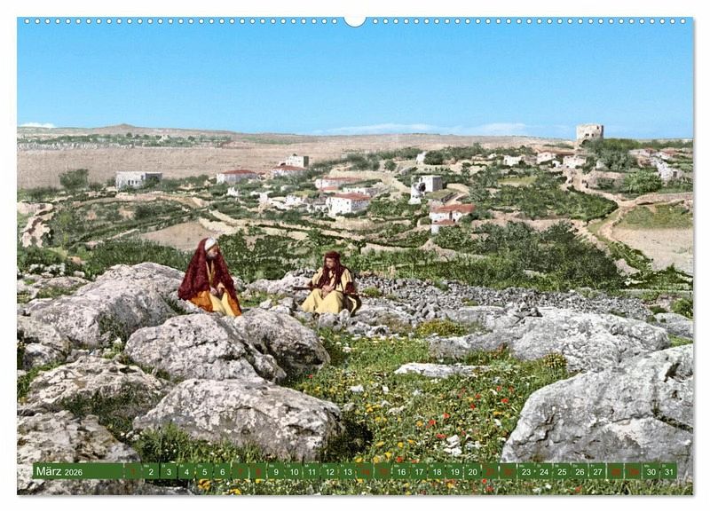 Das Heilige Land oder auch das Gelobte Land war das Land an der Ostküste des Mittelmeers und war Juden, Christen und Muslimen gleichermaßen heilig als Land der alttestamentlichen Verheißung und Offenbarung, als Land, in dem Jesus während seiner irdischen Zeit gelebt, gewirkt und gelitten hatte. Und wohl kaum ein Ort hat eine so dramatische und wechselvolle Geschichte erlebt wie Jerusalem, die "Heilige Stadt". Jerusalem und das Heilige Land waren auch in den Jahren 1890 bis 1910 bunt und voller Leben. In diesem besonderen Kalender sehen Sie alte Photochromdrucke, die möglichst detailreich farblich restauriert und koloriert wurden, um den Orten, den Menschen und dem damaligen Alltag mit Farbe etwas Leben einzuhauchen. Kommen Sie mit auf eine Bilderreise in die Zeit um 1900, sehen Sie bekannte Orte und Landschaften, und haben Sie teil am Leben und Umfeld der Menschen dieser Zeit.