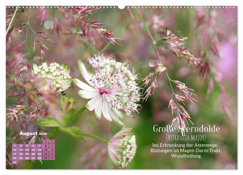 Was uns lediglich wie eine hübsche Zierpflanze erscheint und unseren Garten schmückt, entpuppt sich oftmals als Pflanze mit heilender Wirkung. Ballonblume, Herbstzeitlose, Ehrenpreis, Große Sterndolde, ja sogar die oftmals lästige Ackerwinde enthalten wirkungsvolle, heilungsunterstützende Substanzen. Dieser Kalender mit seinen wunderschönen Fotos informiert Sie über eine Reihe vergessener Heilpflanzen vor unserer Tür.
