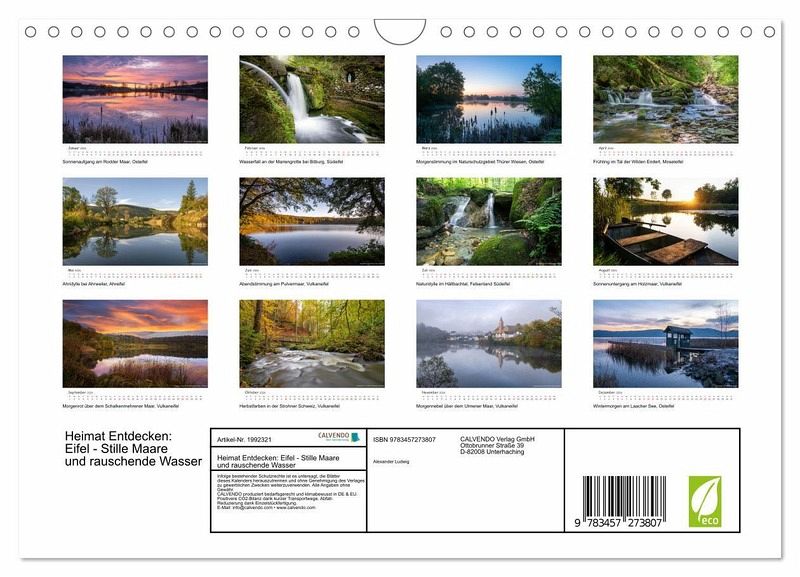 Tauchen Sie ein in die faszinierende Wasserwelt der Eifel und lassen Sie sich zu den geheimnisvollen Maaren, versteckten Wasserfällen und idyllischen Bachläufen dieser einzigartigen Landschaft entführen. Spüren Sie Monat für Monat die Kraft des Wassers und die Ruhe der Natur. Perfekt für Naturliebhaber, Heimatverbundene und alle, die sich nach einer kleinen Auszeit in der Schönheit der Eifel sehnen.