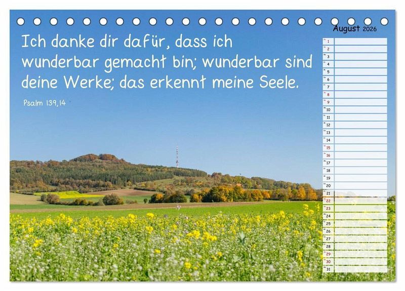 Hochwertiger Tischkalender zum Aufstellen mit 12 wunderschönen Bildern. Unsere Umwelt liegt uns am Herzen. Daher verwenden wir ausschließlich FSC-zertifizierte Papiere aus verantwortungsvoller Waldwirtschaft. Wir vermeiden Überproduktion und somit deutliche Abfallmengen, da wir bedarfsgerecht in Einzelfertigung in Deutschland (Made in Germany) produzieren. Wir halten unsere Transportwege kurz und sorgen für eine klimabewusste Logistik.