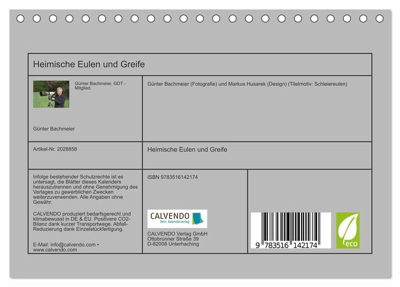 QUALITÄT - Hochwertiger Fotokalender mit 12 wunderschönen Motiven auf lichtbeständigem Bilderdruckpapier, robuste Spiralbindung.NACHHALTIG - deutliche Abfallreduzierung durch bedarfsgerechte Einzelstückfertigung, umweltfreundliches FSC-zertifiziertes Papier, Produktion in Deutschland, klimabewusste Logistik.PERFEKTES GESCHENK - Kalender für Freunde und Familie, für Kinder und Erwachsene, jung und alt, zu Weihnachten, Geburtstag oder zwischendurch.VIELFALT - Bildkalender in verschiedenen Formaten, z.B. DIN A5, DIN A4, DIN A3 sowie DIN A2. Ob Naturmotiv, Gemälde oder Fotos, ideal für ein persönliches Wohlfühlambiente.Eulen und Greifvögel auf 12 Seiten + Cover porträtiert von Autor(in): eisvogel