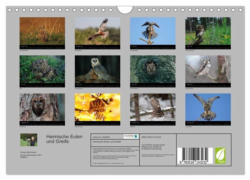 QUALITÄT - Hochwertiger Fotokalender mit 12 wunderschönen Motiven auf lichtbeständigem Bilderdruckpapier, robuste Spiralbindung mit Aufhängebügel.NACHHALTIG - deutliche Abfallreduzierung durch bedarfsgerechte Einzelstückfertigung, umweltfreundliches FSC-zertifiziertes Papier, Produktion in Deutschland, klimabewusste Logistik.PERFEKTES GESCHENK - Kalender für Freunde und Familie, für Kinder und Erwachsene, jung und alt, zu Weihnachten, Geburtstag oder zwischendurch.VIELFALT - Bildkalender in verschiedenen Formaten, z.B. DIN A5, DIN A4, DIN A3 sowie DIN A2. Ob Naturmotiv, Gemälde oder Fotos, ideal für ein persönliches Wohlfühlambiente.Eulen und Greifvögel auf 12 Seiten + Cover porträtiert von Autor(in): eisvogel