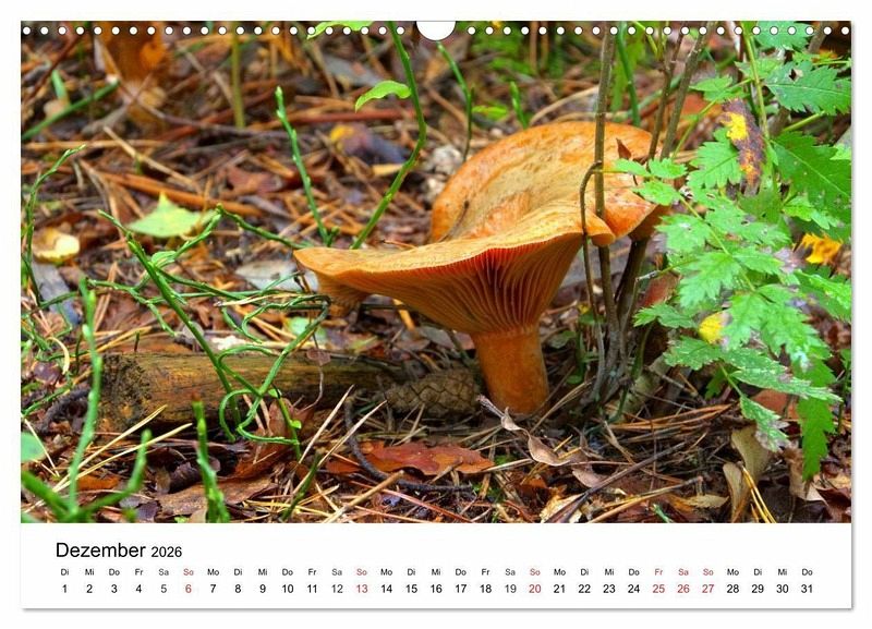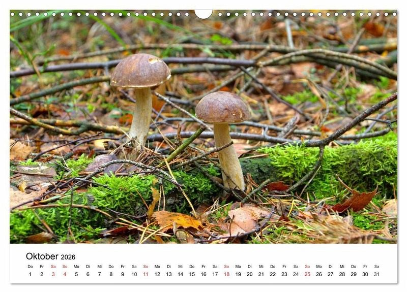 Dieser Pilzkalender zeigt beliebte Waldpilze. Abwechslungsreiche Fotos zeigen bevorzugt Speisepilze aus den heimischen Wäldern.
