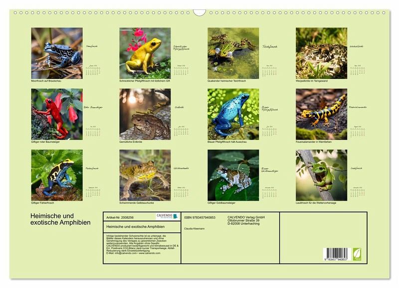 QUALITÄT - Hochwertiger Fotokalender mit 12 wunderschönen Motiven auf lichtbeständigem Bilderdruckpapier, robuste Spiralbindung mit Aufhängebügel.NACHHALTIG - deutliche Abfallreduzierung durch bedarfsgerechte Einzelstückfertigung, umweltfreundliches FSC-zertifiziertes Papier, Produktion in Deutschland, klimabewusste Logistik.PERFEKTES GESCHENK - Kalender für Freunde und Familie, für Kinder und Erwachsene, jung und alt, zu Weihnachten, Geburtstag oder zwischendurch.VIELFALT - Bildkalender in verschiedenen Formaten, z.B. DIN A5, DIN A4, DIN A3 sowie DIN A2. Ob Naturmotiv, Gemälde oder Fotos, ideal für ein persönliches Wohlfühlambiente.Bunte Frösche, Lurche, Unken und Kröten von Autor(in): Claudia Kleemann