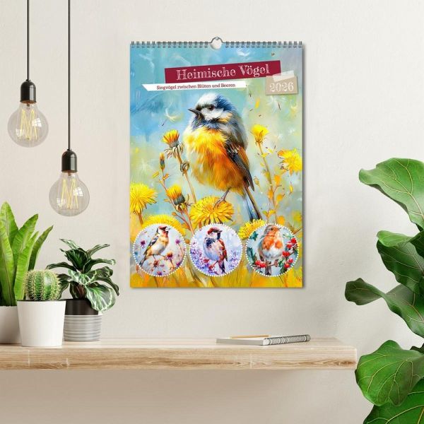 "Heimische Vögel - Zwischen Blüten und Beeren" ist ein kunstvoll gestalteter und KI-generierter Kalender, der zwölf unserer schönsten heimischen Singvögel in ihrer natürlichen Umgebung zeigt. Die liebevollen Illustrationen vereinen malerische Farbwelten mit detailreichen Darstellungen von Vögeln inmitten von Blüten, Beeren und Zweigen. Ob Rotkehlchen im Winterzauber, Stieglitz zwischen Disteln oder der Fitis auf blühenden Ästen - jede Seite bringt die Schönheit der Natur direkt ins Zuhause. Ein wunderbarer Kalender für Vogelliebhaber und Naturfreunde!