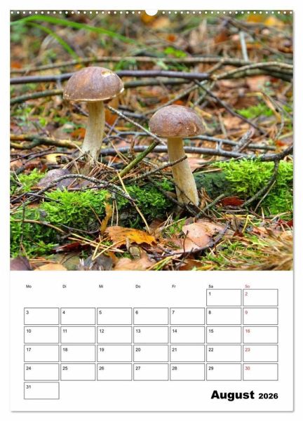 Dieser Pilzkalender zeigt beliebte Waldpilze. Abwechslungsreiche Fotos zeigen bevorzugt Speisepilze aus den heimischen Wäldern.