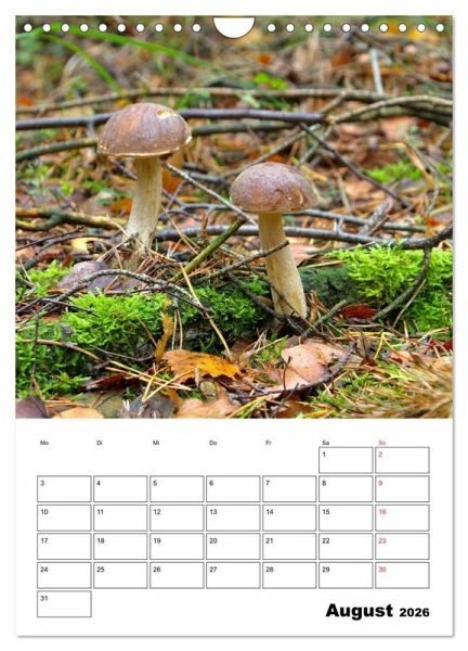 Dieser Pilzkalender zeigt beliebte Waldpilze. Abwechslungsreiche Fotos zeigen bevorzugt Speisepilze aus den heimischen Wäldern.