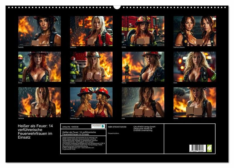 Erleben Sie die perfekte Mischung aus Mut und Glamour mit unseren furchtlosen Feuerwehrfrauen! Dieser Kalender wurde mit K.I erstellt und zeigt sexy Frauen, die im Einsatz nicht nur Feuer bekämpfen, sondern auch mit Stil und Selbstbewusstsein glänzen. Zwischen Flammen und Fashion setzen sie alles daran, Leben zu retten und dabei atemberaubend auszusehen. Lassen Sie sich Monat für Monat von aufregenden Bildern verführen, die sowohl die Kraft als auch die sinnliche Seite dieser außergewöhnlichen Frauen in Szene setzen.