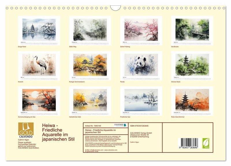 QUALITÄT - Hochwertiger Fotokalender mit 12 wunderschönen Motiven auf lichtbeständigem Bilderdruckpapier, robuste Spiralbindung mit Aufhängebügel.NACHHALTIG - deutliche Abfallreduzierung durch bedarfsgerechte Einzelstückfertigung, umweltfreundliches FSC-zertifiziertes Papier, Produktion in Deutschland, klimabewusste Logistik.PERFEKTES GESCHENK - Kalender für Freunde und Familie, für Kinder und Erwachsene, jung und alt, zu Weihnachten, Geburtstag oder zwischendurch.VIELFALT - Bildkalender in verschiedenen Formaten, z.B. DIN A5, DIN A4, DIN A3 sowie DIN A2. Ob Naturmotiv, Gemälde oder Fotos, ideal für ein persönliches Wohlfühlambiente.Landschaftliche Aquarelle im japanischen Stil - KI generiert von Autor(in): Catill