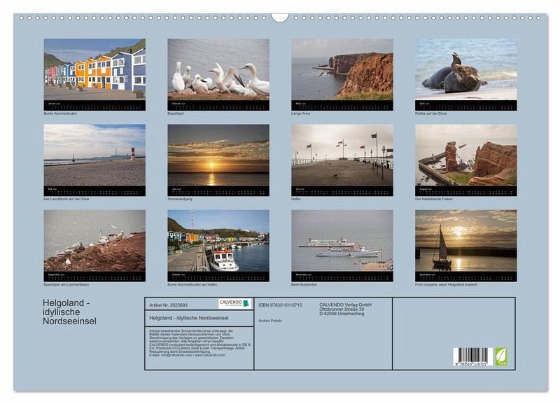 und Familie, für Kinder und Erwachsene, jung und alt, zu Weihnachten, Geburtstag oder zwischendurch.VIELFALT - Bildkalender in verschiedenen Formaten, z.B. DIN A5, DIN A4, DIN A3 sowie DIN A2. Ob Naturmotiv, Gemälde oder Fotos, ideal für ein persönliches Wohlfühlambiente.Helgoland, die idyllische Nordseeinsel, wer einmal dort war, kann sich ihres Zaubers nicht entziehen. von Autor(in): Andrea Potratz.