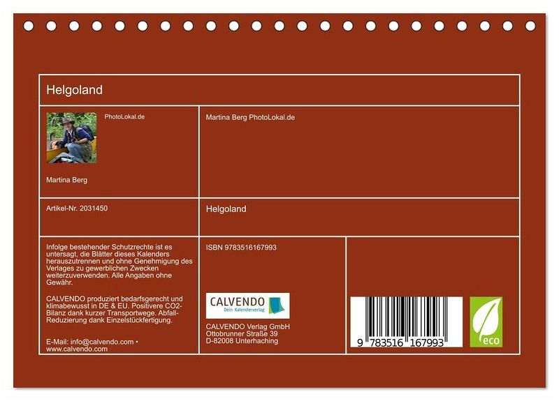 QUALITÄT - Hochwertiger Fotokalender mit 12 wunderschönen Motiven auf lichtbeständigem Bilderdruckpapier, robuste Spiralbindung.NACHHALTIG - deutliche Abfallreduzierung durch bedarfsgerechte Einzelstückfertigung, umweltfreundliches FSC-zertifiziertes Papier, Produktion in Deutschland, klimabewusste Logistik.PERFEKTES GESCHENK - Kalender für Freunde und Familie, für Kinder und Erwachsene, jung und alt, zu Weihnachten, Geburtstag oder zwischendurch.VIELFALT - Bildkalender in verschiedenen Formaten, z.B. DIN A5, DIN A4, DIN A3 sowie DIN A2. Ob Naturmotiv, Gemälde oder Fotos, ideal für ein persönliches Wohlfühlambiente.Deutschlands traumhafte Hochseeinsel von Autor(in): Martina Berg