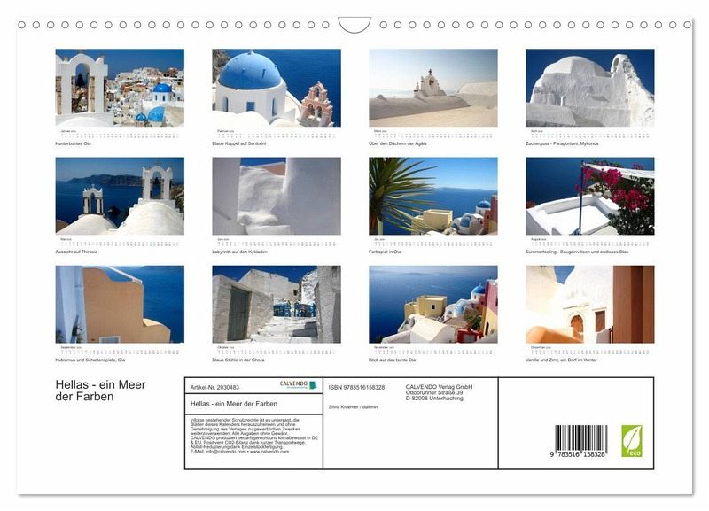 QUALITÄT - Hochwertiger Fotokalender mit 12 wunderschönen Motiven auf lichtbeständigem Bilderdruckpapier, robuste Spiralbindung mit Aufhängebügel.NACHHALTIG - deutliche Abfallreduzierung durch bedarfsgerechte Einzelstückfertigung, umweltfreundliches FSC-zertifiziertes Papier, Produktion in Deutschland, klimabewusste Logistik.PERFEKTES GESCHENK - Kalender für Freunde und Familie, für Kinder und Erwachsene, jung und alt, zu Weihnachten, Geburtstag oder zwischendurch.VIELFALT - Bildkalender in verschiedenen Formaten, z.B. DIN A5, DIN A4, DIN A3 sowie DIN A2. Ob Naturmotiv, Gemälde oder Fotos, ideal für ein persönliches Wohlfühlambiente.Eine bunte Reise zu Griechenlands Inseln von Autor(in): diafimin