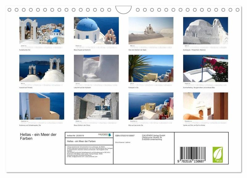 QUALITÄT - Hochwertiger Fotokalender mit 12 wunderschönen Motiven auf lichtbeständigem Bilderdruckpapier, robuste Spiralbindung mit Aufhängebügel.NACHHALTIG - deutliche Abfallreduzierung durch bedarfsgerechte Einzelstückfertigung, umweltfreundliches FSC-zertifiziertes Papier, Produktion in Deutschland, klimabewusste Logistik.PERFEKTES GESCHENK - Kalender für Freunde und Familie, für Kinder und Erwachsene, jung und alt, zu Weihnachten, Geburtstag oder zwischendurch.VIELFALT - Bildkalender in verschiedenen Formaten, z.B. DIN A5, DIN A4, DIN A3 sowie DIN A2. Ob Naturmotiv, Gemälde oder Fotos, ideal für ein persönliches Wohlfühlambiente.Eine bunte Reise zu Griechenlands Inseln von Autor(in): diafimin