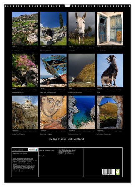 Griechenland zählt mit seinen unzähligen Inseln zu den beliebtesten Urlauszielen. Landschaft, Kultur und gutes Essen zielen jährlich unzählige Erholungssuchende in dieses Geschichtsträchtige Land mit seinen abwechslungsreichen Landschaften. Der Naturfotograf Benny Trapp gilt als Kenner des Landes und zeigt in diesem Kalender Bilder von Festland und einigen Inseln.