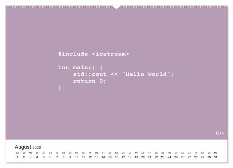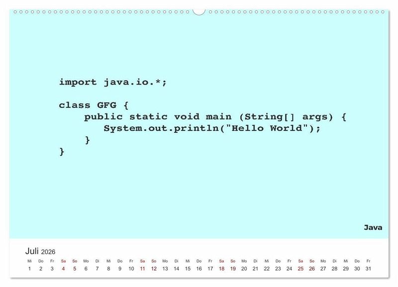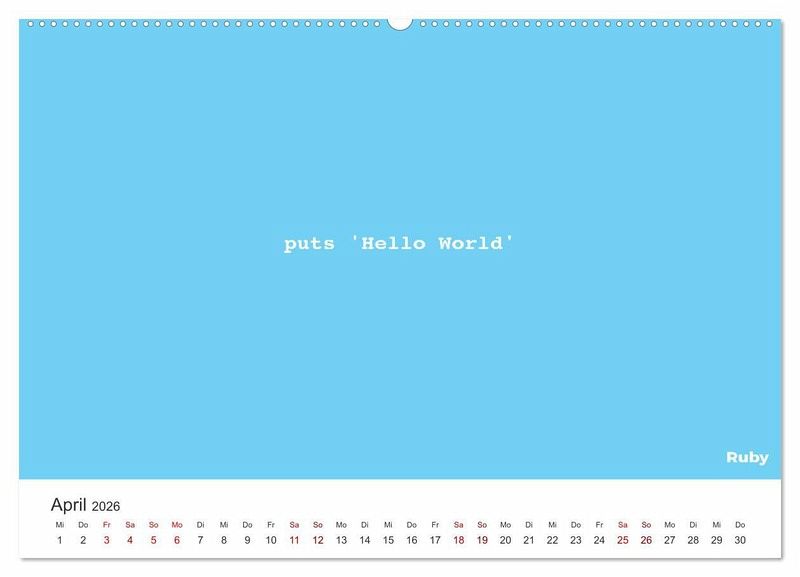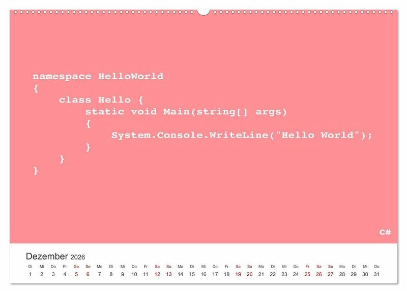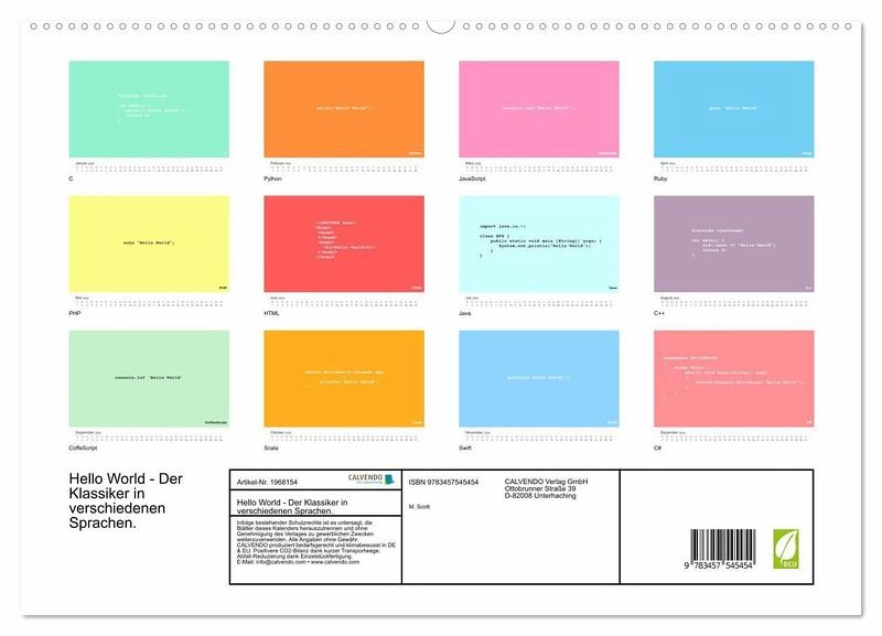PREMIUM-LINIE - Brillanter Fotokalender mit 12 wunderschönen Motiven, Kunstdruck in Hochglanz in Museumsqualität.QUALITÄT - edle Materialien, stabile Rückwand mit 2 innovativen Einstecktaschen für eine optimale Präsentation an der Wand.NACHHALTIG - deutliche Abfallreduzierung durch bedarfsgerechte Einzelstückfertigung, umweltfreundliches FSC-zertifiziertes Papier, Produktion in Deutschland, klimabewusste Logistik.PERFEKTES GESCHENK - Kalender für Freunde und Familie, für Kinder und Erwachsene, jung und alt, zu Weihnachten, Geburtstag oder zwischendurch.Ein Muss für jeden Programmierer! Jeden Monat eine andere Programmiersprache. von Autor(in): Benjamin Lederer