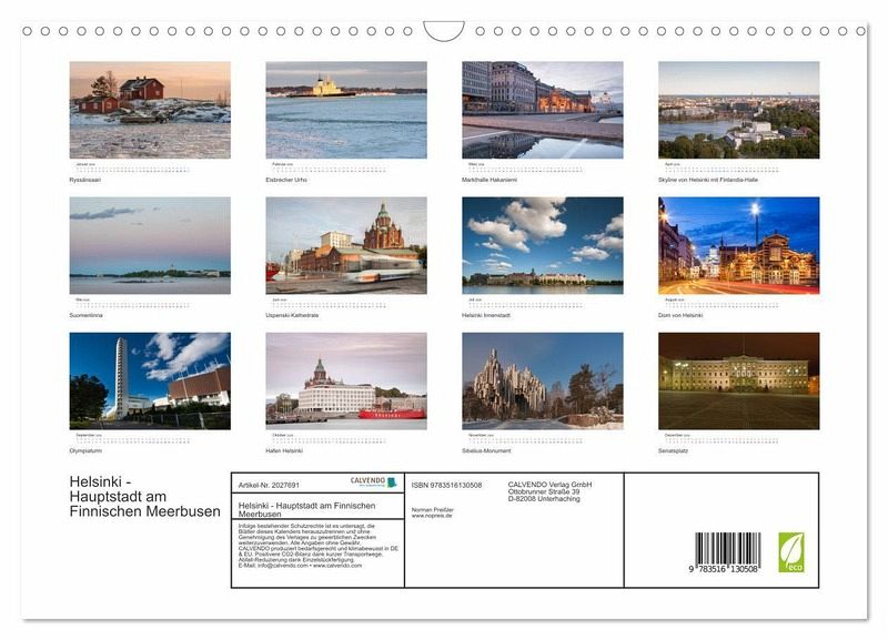 Dieser aufwändig erstellte Fotokalender des Fotografen Norman Preißler begeistert mit spektakulären Motiven der faszinierenden finnischen Hauptstadt. Dieser Kalender der faszinierenden Hauptstadt Finnlands ist ein Muss für Finnland- und Helsinki-Begeisterte.
