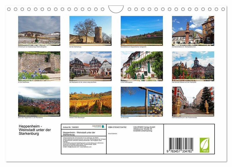 QUALITÄT - Hochwertiger Fotokalender mit 12 wunderschönen Motiven auf lichtbeständigem Bilderdruckpapier, robuste Spiralbindung mit Aufhängebügel.NACHHALTIG - deutliche Abfallreduzierung durch bedarfsgerechte Einzelstückfertigung, umweltfreundliches FSC-zertifiziertes Papier, Produktion in Deutschland, klimabewusste Logistik.PERFEKTES GESCHENK - Kalender für Freunde und Familie, für Kinder und Erwachsene, jung und alt, zu Weihnachten, Geburtstag oder zwischendurch.VIELFALT - Bildkalender in verschiedenen Formaten, z.B. DIN A5, DIN A4, DIN A3 sowie DIN A2. Ob Naturmotiv, Gemälde oder Fotos, ideal für ein persönliches Wohlfühlambiente.In der sehenswerten kleinen Stadt Heppenheim an der Bergstraße liegt von je her der Schwerpunkt auf den Anbau und die Herstellung von Wein. von Autor(in): Ilona Andersen
