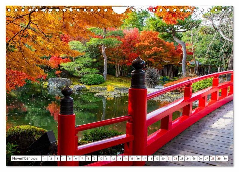 In diesem außergewöhnlichen Kalender finden Sie atemberaubende Bilder, die das Fernweh und Sehnsucht nach faszinierenden Orten in Japan wecken. 12 traumhafte Aufnahmen zeigen Ihnen ein buntes Farbenspiel - das magische Rot des Ahorns und das leuchtende Gelb der Ginkgo Blätter. Lassen Sie sich Monat für Monat verzaubern vom wahren Wunder der Natur.