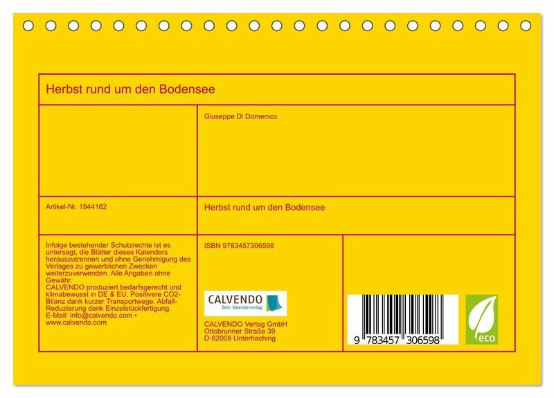 QUALITÄT - Hochwertiger Fotokalender mit 12 wunderschönen Motiven auf lichtbeständigem Bilderdruckpapier, robuste Spiralbindung.NACHHALTIG - deutliche Abfallreduzierung durch bedarfsgerechte Einzelstückfertigung, umweltfreundliches FSC-zertifiziertes Papier, Produktion in Deutschland, klimabewusste Logistik.PERFEKTES GESCHENK - Kalender für Freunde und Familie, für Kinderund Erwachsene, jung und alt, zu Weihnachten, Geburtstag oder zwischendurch.VIELFALT - Bildkalender in verschiedenen Formaten, z.B. DIN A5, DIN A4, DIN A3 sowie DIN A2. Ob Naturmotiv, Gemälde oder Fotos, ideal für ein persönliches Wohlfühlambiente.Stimmungsvolle Impressionen im goldenen Herbst am Bodensee von Autor(in): Giuseppe Di Domenico