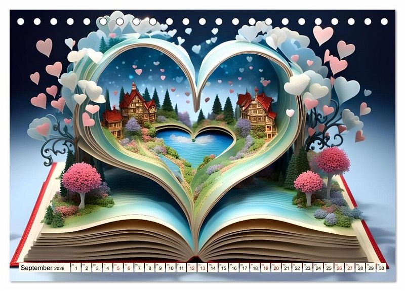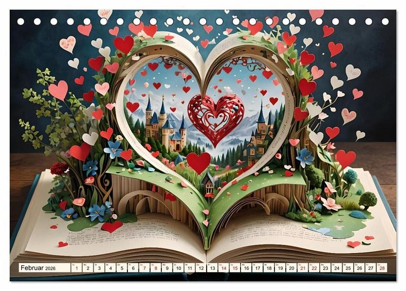 Lassen Sie sich jeden Monat aufs Neue von der Schönheit und Magie der Herzen und Natur verzaubern, die aus den Seiten eines Buches entspringt. Dieser Kalender ist nicht nur ein Zeitmesser, sondern ein Portal in eine Welt, in der die Grenzen zwischen Realität und Fantasie verschwimmen.