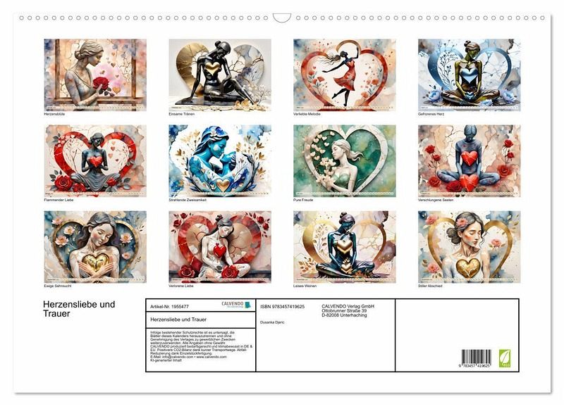 QUALITÄT - Hochwertiger Fotokalender mit 12 wunderschönen Motiven auf lichtbeständigem Bilderdruckpapier, robuste Spiralbindung mit Aufhängebügel.NACHHALTIG - deutliche Abfallreduzierung durch bedarfsgerechte Einzelstückfertigung, umweltfreundliches FSC-zertifiziertes Papier, Produktion in Deutschland, klimabewusste Logistik.PERFEKTES GESCHENK - Kalender für Freunde und Familie, für Kinder und Erwachsene, jung und alt, zu Weihnachten, Geburtstag oder zwischendurch.VIELFALT - Bildkalender in verschiedenen Formaten, z.B. DIN A5, DIN A4, DIN A3 sowie DIN A2. Ob Naturmotiv, Gemälde oder Fotos, ideal für ein persönliches Wohlfühlambiente.Skulpturen als Erinnerung, Bilder die nicht nur die Augen, sondern auch das Herz berühren, mit KI generiert. von Autor(in): Dusanka Djeric