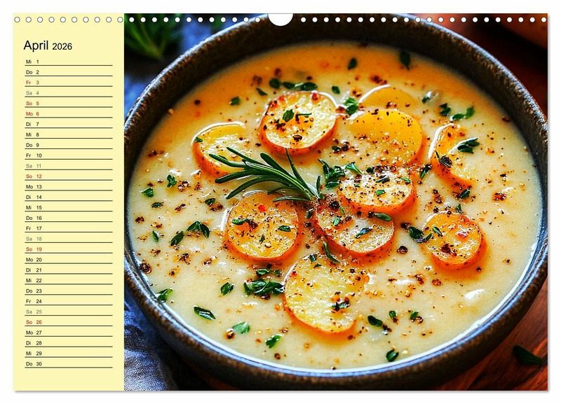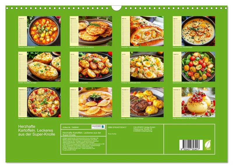 Dieser Kalender präsentiert eine köstliche Sammlung herzhaft angerichteter Kartoffelgerichte, die durch den Einsatz moderner KI-Technologie zum Leben erweckt wurden. Jeden Monat erwartet Sie ein visuelles Highlight, das die Vielseitigkeit der Kartoffel auf kreative Weise feiert. Lassen Sie sich von den detailreichen Bildern inspirieren, die ohne Rezepte auskommen und dennoch das Wasser im Mund zusammenlaufen lassen. Perfekt für Liebhaber kulinarischer Kunstwerke und Kartoffelenthusiasten gleichermaßen.