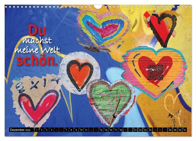 Entdecken Sie den HERZIG Liebesbotschaften Kalender - Ihr täglicher Begleiter voller Liebe und Herzenswärme! Jeder Monat überrascht mit coolen und charmanten Illustrationen und liebevollen Botschaften, die das Herz berühren und zum Lächeln bringen. Egal, ob Sie frisch verliebt sind oder die Liebe schon lange feiern - dieser Kalender erinnert daran, wie wertvoll Ihre Beziehung ist. Lassen Sie sich von herzigen Ideen inspirieren und versüßen Sie Ihrem Lieblingsmenschen den Alltag. Der perfekte Mix aus Zuneigung und Kreativität - ein Geschenk, das 365 Tage lang Freude schenkt! HERZIG Liebesbotschaften: Liebe jeden Tag! Die verwendeten Herzen hat Gabriele Gerner auf vielen Reisen um den ganzen Globus gesammelt und mit modernen Hintergründen tolle Collagen erstellt.