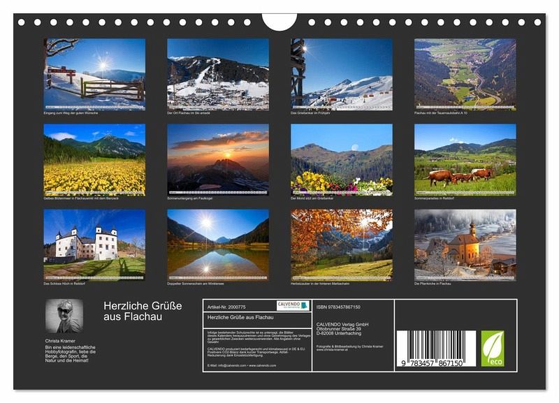 QUALITÄT - Hochwertiger Fotokalender mit 12 wunderschönen Motiven auf lichtbeständigem Bilderdruckpapier, robuste Spiralbindung mit Aufhängebügel.NACHHALTIG - deutliche Abfallreduzierung durch bedarfsgerechte Einzelstückfertigung, umweltfreundliches FSC-zertifiziertes Papier, Produktion in Deutschland, klimabewusste Logistik.PERFEKTES GESCHENK - Kalender für Freunde und Familie, für Kinder und Erwachsene, jung und alt, zu Weihnachten, Geburtstag oder zwischendurch.VIELFALT - Bildkalender in verschiedenen Formaten, z.B. DIN A5, DIN A4, DIN A3 sowie DIN A2. Ob Naturmotiv, Gemälde oder Fotos, ideal fürein persönliches Wohlfühlambiente.Die schönsten Impressionen in Flachau von Autor(in): Christa Kramer