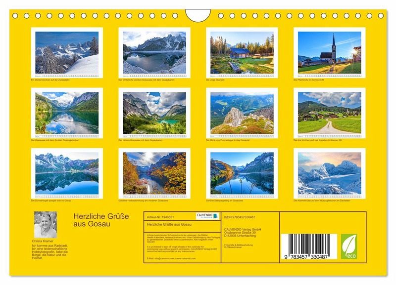 QUALITÄT - Hochwertiger Fotokalender mit 12 wunderschönen Motiven auf lichtbeständigem Bilderdruckpapier, robuste Spiralbindung mit Aufhängebügel.NACHHALTIG - deutliche Abfallreduzierung durch bedarfsgerechte Einzelstückfertigung, umweltfreundliches FSC-zertifiziertes Papier, Produktion in Deutschland, klimabewusste Logistik.PERFEKTES GESCHENK - Kalender für Freunde und Familie, für Kinder und Erwachsene, jung und alt, zu Weihnachten, Geburtstag oder zwischendurch.VIELFALT - Bildkalender in verschiedenen Formaten, z.B. DIN A5, DIN A4, DIN A3 sowie DIN A2. Ob Naturmotiv, Gemälde oder Fotos, ideal für ein persönliches Wohlfühlambiente.Schöne Impressionen aus Gosau im oberösterreichischen Salzkammergut in den vier Jahreszeiten von Autor(in): Christa Kramer