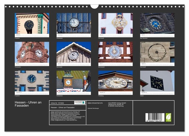 QUALITÄT - Hochwertiger Fotokalender mit 12 wunderschönen Motiven auf lichtbeständigem Bilderdruckpapier, robuste Spiralbindung mit Aufhängebügel.NACHHALTIG - deutliche Abfallreduzierung durch bedarfsgerechte Einzelstückfertigung, umweltfreundliches FSC-zertifiziertes Papier, Produktion in Deutschland, klimabewusste Logistik.PERFEKTES GESCHENK - Kalender für Freunde und Familie, für Kinder und Erwachsene, jung und alt, zu Weihnachten, Geburtstag oder zwischendurch.VIELFALT - Bildkalender in verschiedenen Formaten, z.B. DIN A5, DIN A4, DIN A3 sowie DIN A2. Ob Naturmotiv, Gemälde oder Fotos, ideal für ein persönliches Wohlfühlambiente.Eine fotografische Reise durch Hessen lenkt die Aufmerksamkeit auf besondere Uhren als Motiv. von Autor(in): Gabriele Rechberger